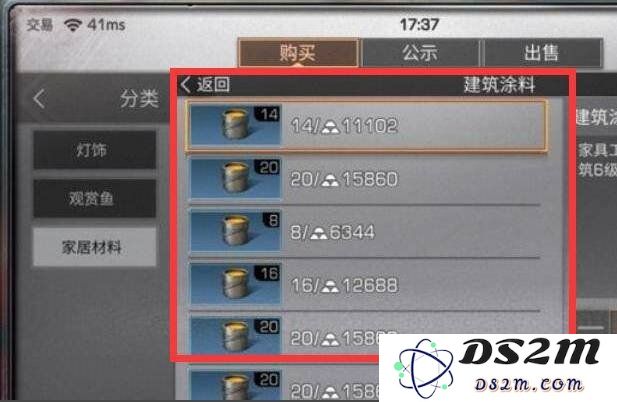 首先,建筑涂料在《明日之后》中按颜色和材质进行了分类。